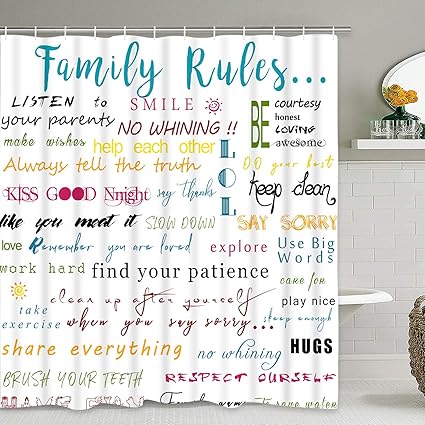 Family Rules Educational Shower Curtain With 12 Hooks Motivational And Inspirational Quotes Shower Curtain For Bathroom Waterproof