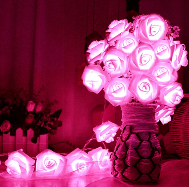 Romantic 20 Led Lighting Rose Flower String Fairy Lights Home Bedroom Garden Decor Wedding Party Decoration Artificial Plants In Artificial Dried