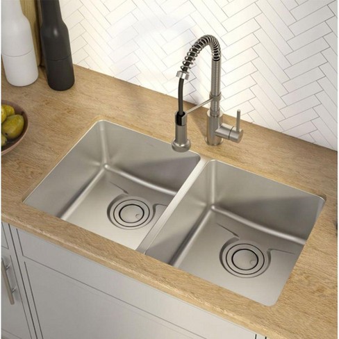 Kraus Dex Series 33 Inch Undermount Double Bowl Stainless Steel