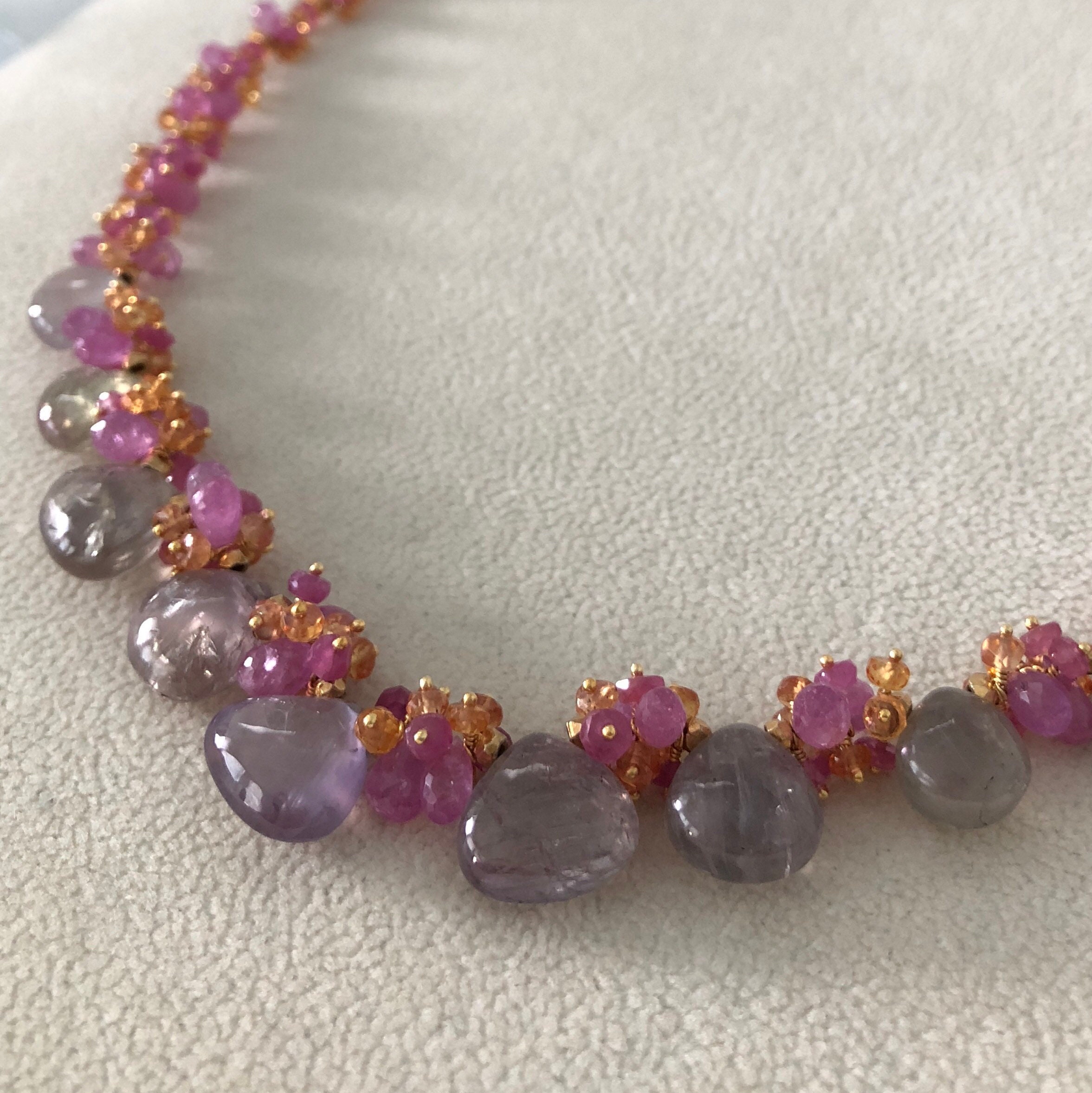 Sapphire Gemstone Necklace In Gold Vermeil And Lavender And Gray