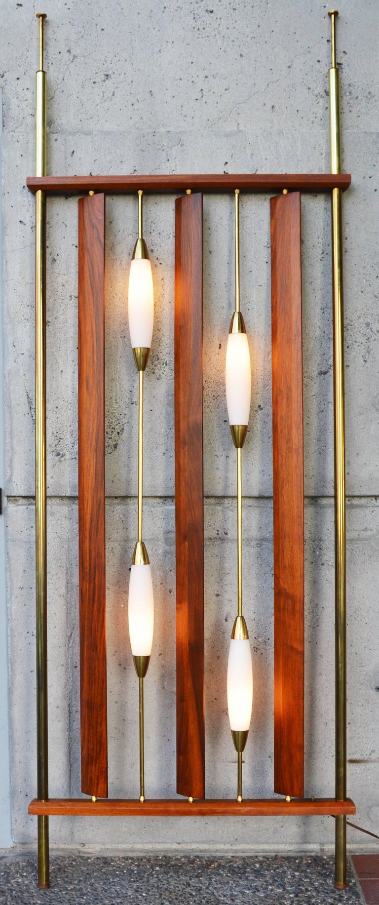 Mid Century Modern Walnut Brass And Frosted Glass Room Divider Or