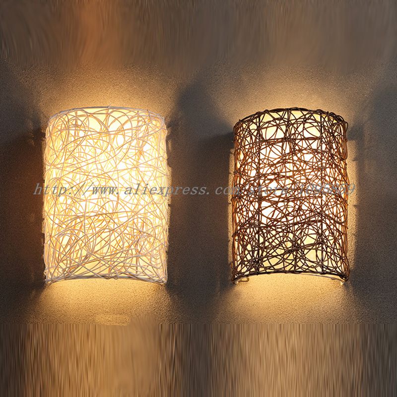 2019 Modern Handmade Rattan Wall Sconces Lamp Brown White Color