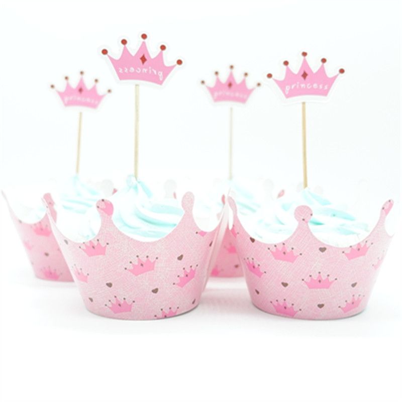 24pcs Princess Crown Cupcake Wrapper Topper Picks Baby Girl Birthday Party Decoration Cake Cups 12 Wraps 12 Topper Suppliers