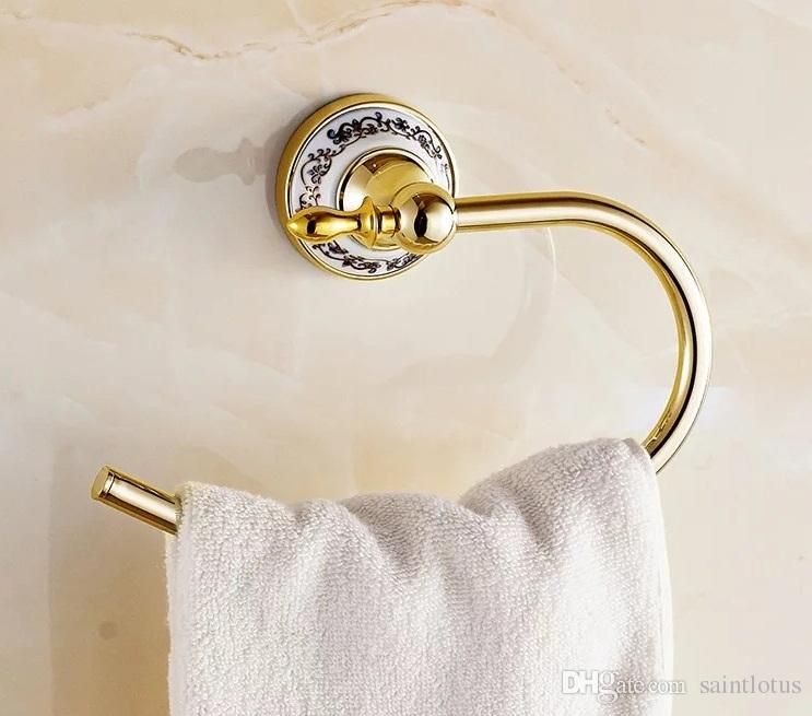 Golden Antique Bath Towel Ring Semi Circle Towel Rack Holder Stainless Steel Towel Bar Shevels Bathroom Accessories