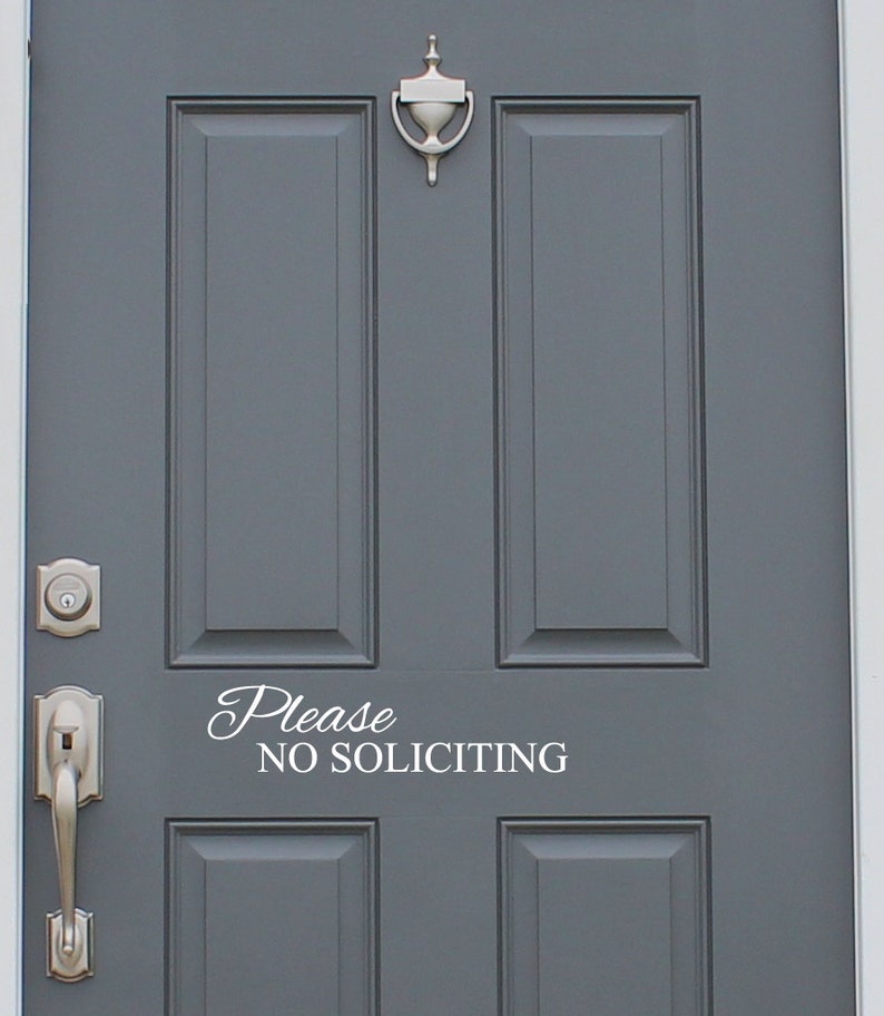 No Soliciting Vinyl Decal Sticker Front Door Custom Vinyl Lettering Custom Door Decal Front Door Decals Fancy Door Vinyl