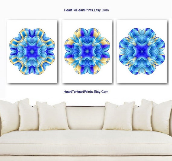 Rustic Blue Floral Wall Art Light Blue Wall Decor Royal Blue Living Room Bedroom Decor Royal Blue Flower Prints Blue Home Decor Set Of 3