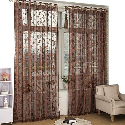 Amazon Com Living Room Sheer Curtains Leaves Jacquard Voile Window