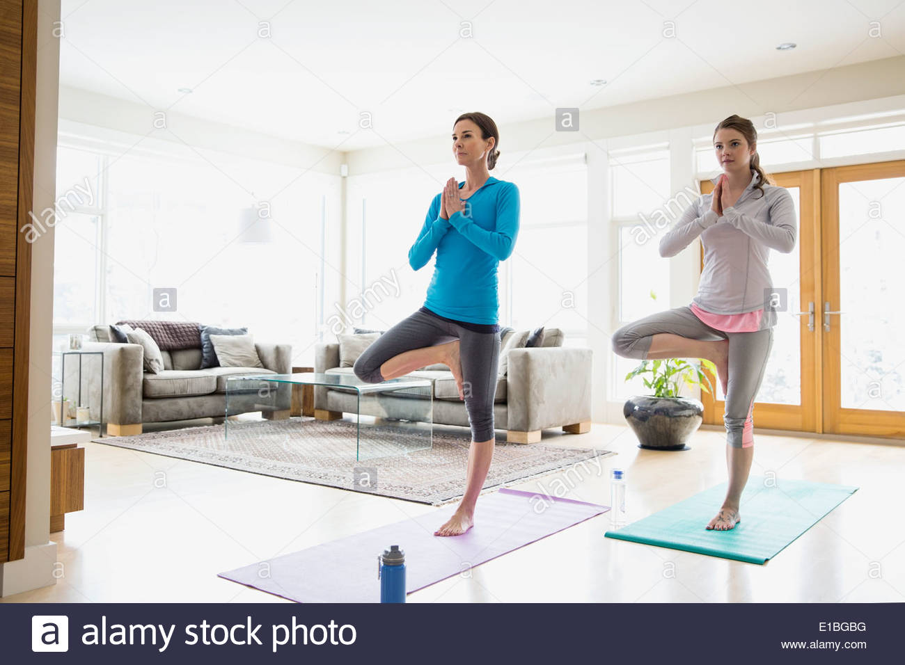 Mother And Daughter Doing Yoga In Living Room Stock Photo 69710468