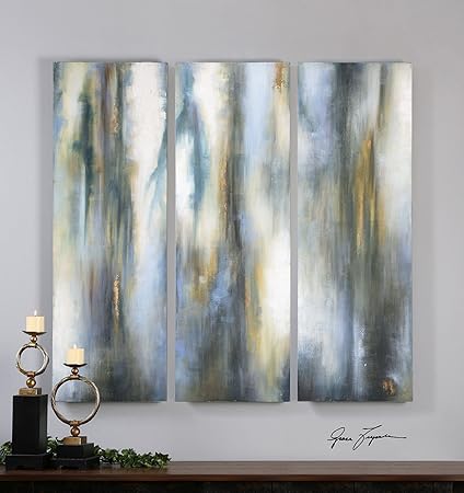 Amazon Com Abstract Triptych Oil Painting Panels Gray Gold Silver