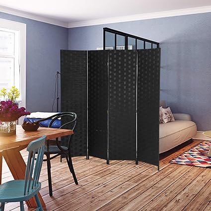 Mr Direct Room Divider 4 Panel Wood Mesh Woven Design Room Screen Divider Wooden Screen Folding Portable Partition Screen Screen Wood For Home Office