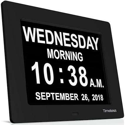 Buy dayclox the original memory loss digital calendar day clock with extra large non abbreviated day month. What is vobot clock.