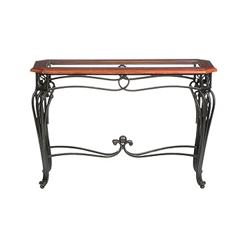 Prentice Sofa Console Table Dark Cherry W Black Metal Frame Glass Top