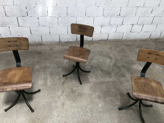 Industrial Metal And Plywood Dining Chairs 1950s Set Of 3